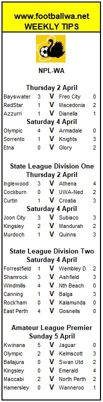 Division Two also looks set to be a tight competition this year. Forrestfield United and East Perth are among the favourites, while a much improved Rockingham City will be one of the teams to watch.